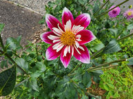 De type Collerette, variété de belle fleur rose délimité de blanc. De plus bel effet, 90/100cm